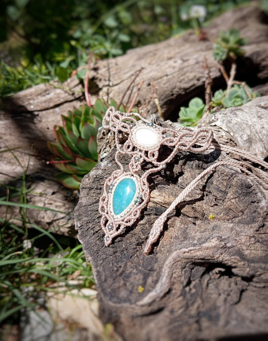 Gargantilla Kalma con Piedra Luna y Amazonita (Pieza única)