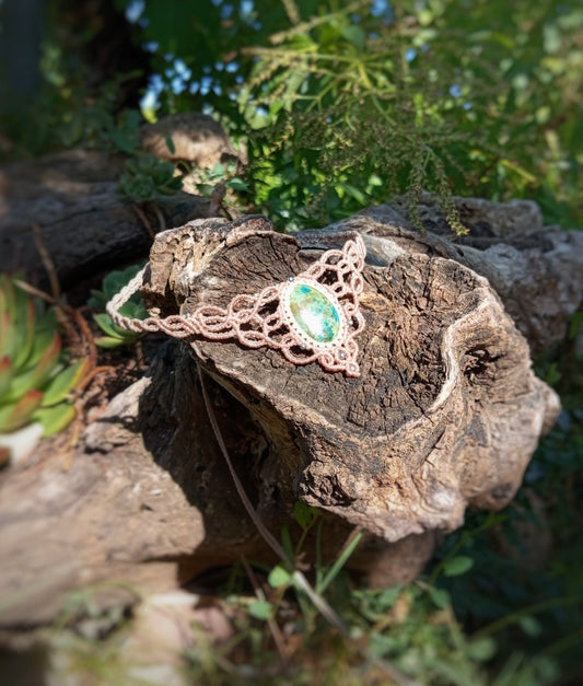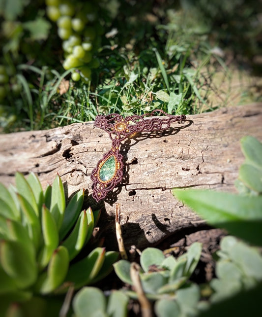 Gargantilla Amara con Prehnita y Ámbar (Pieza única)