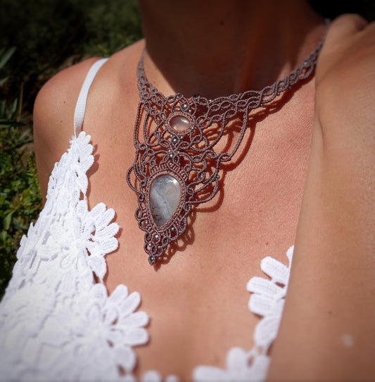 Gargantilla Hikari con Cuarzo rosa y Fluorita (Pieza única)