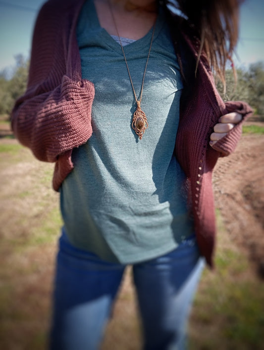 Colgante Amara con Prehnita y Ámbar (Pieza única)