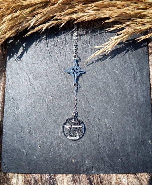 Colgante Doble Protección: Nudo de Bruja y Tetragrammaton