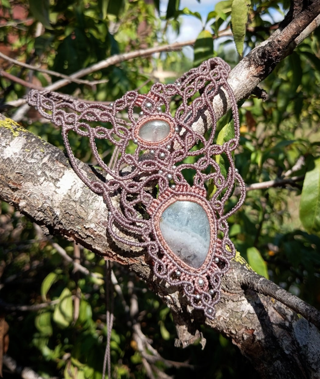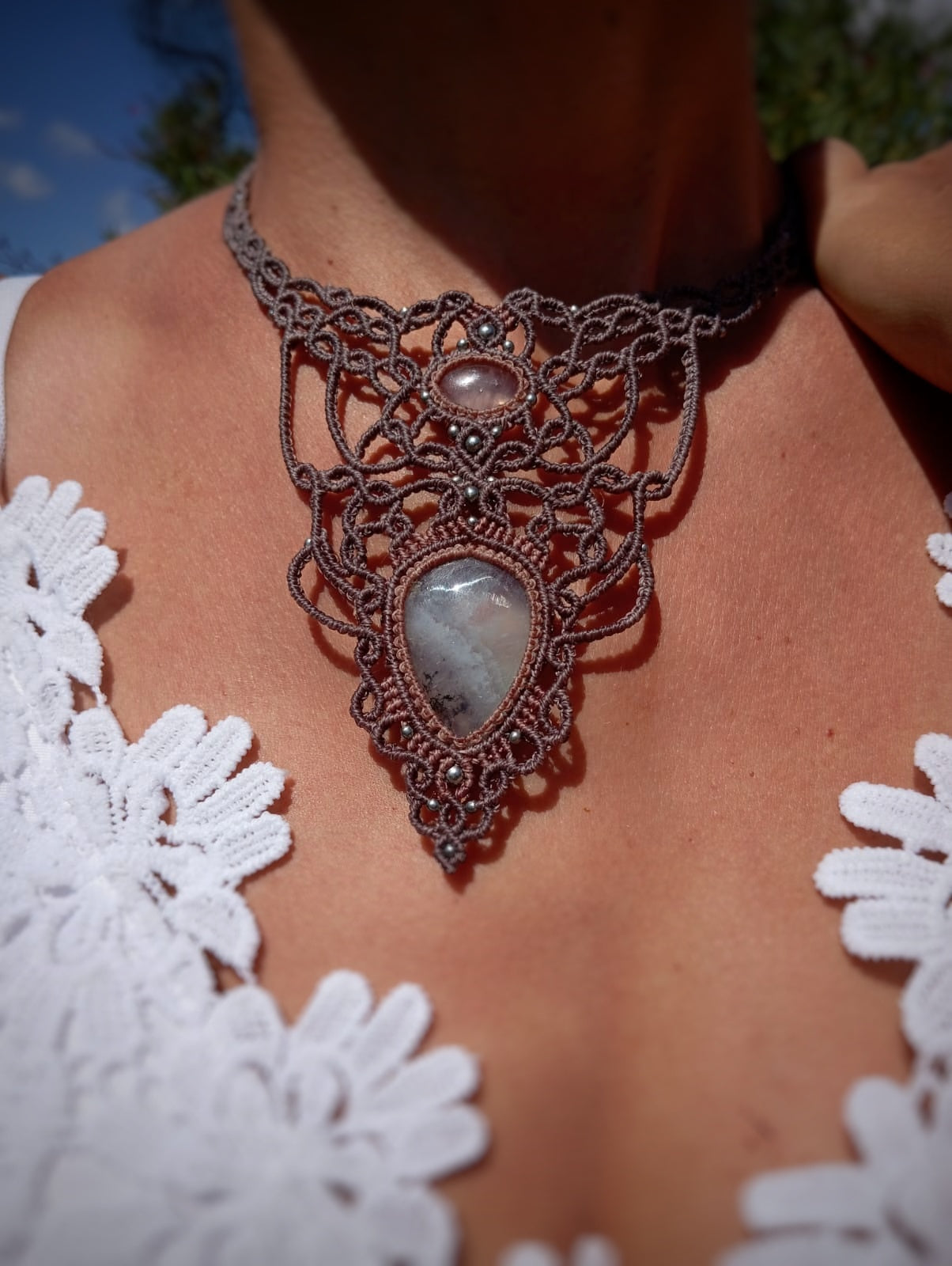 Una Gargantilla imponente ,con una Fluorita espectacular como protagonista y un cuarzo rosa que la corona.